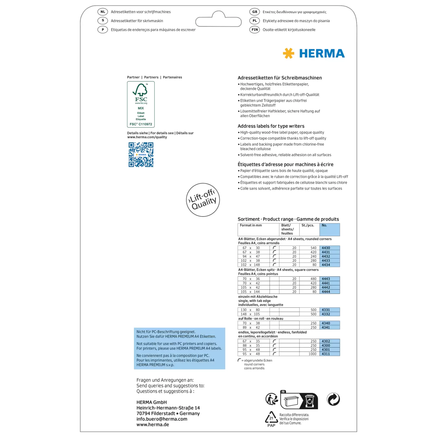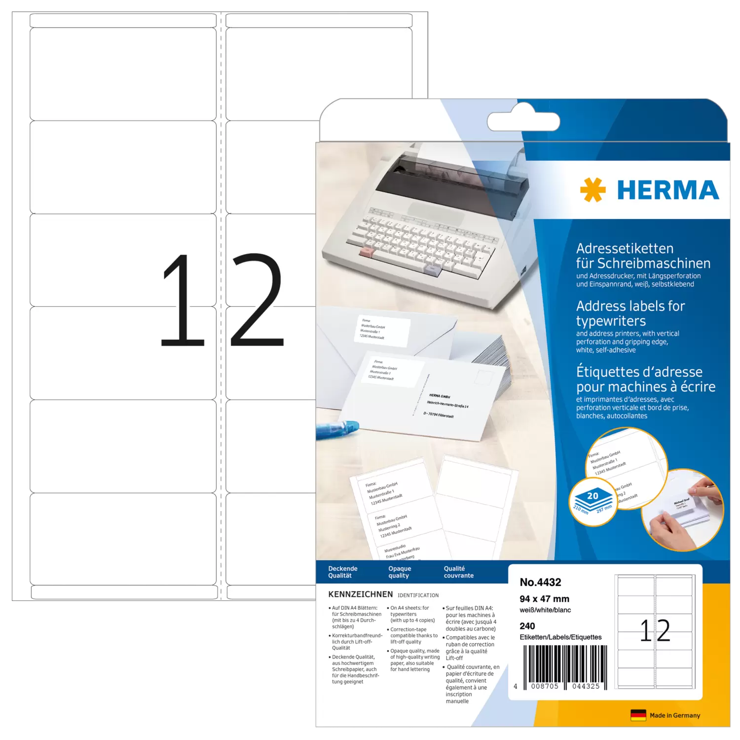 Adressetiketten für Schreibmaschinen, A4, 94 x 47 mm, weiß, permanent haftend
