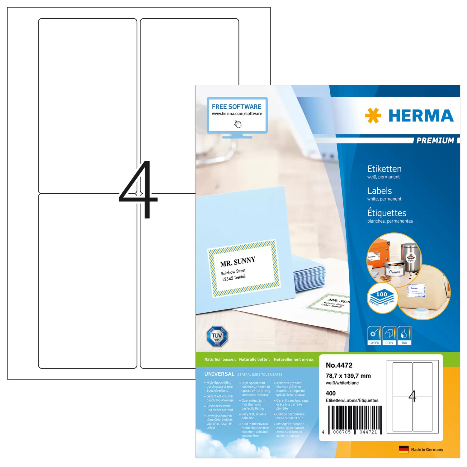 PREMIUM Adressetiketten A4, 78,7 x 139,7 mm, weiß, permanent haftend