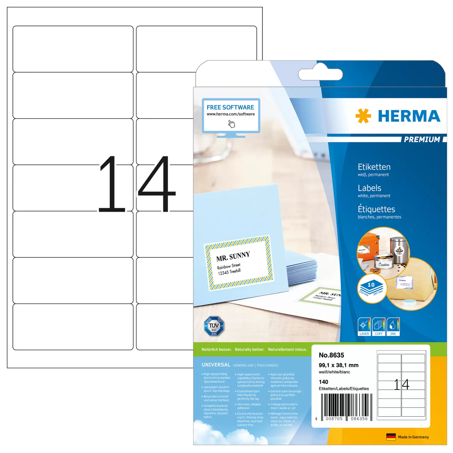 Inhalt: 140 Etiketten / 10 Blatt