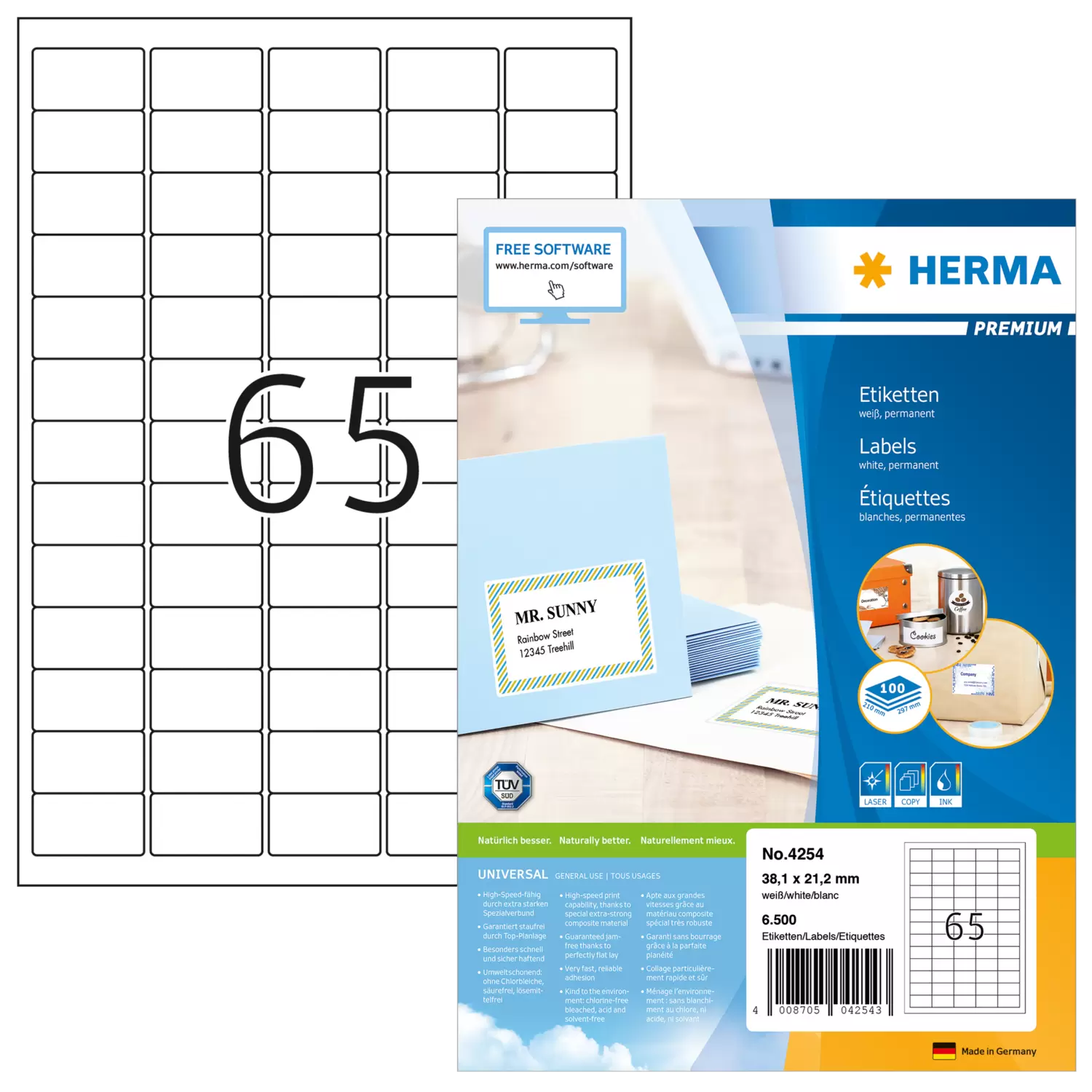 PREMIUM Adressetiketten A4, 38,1 x 21,2 mm, permanent haftend