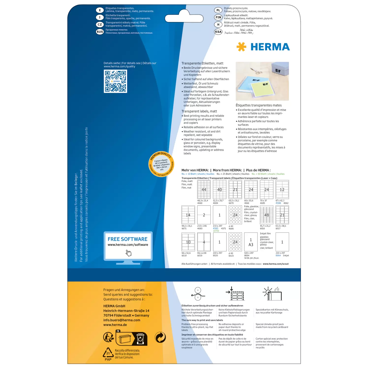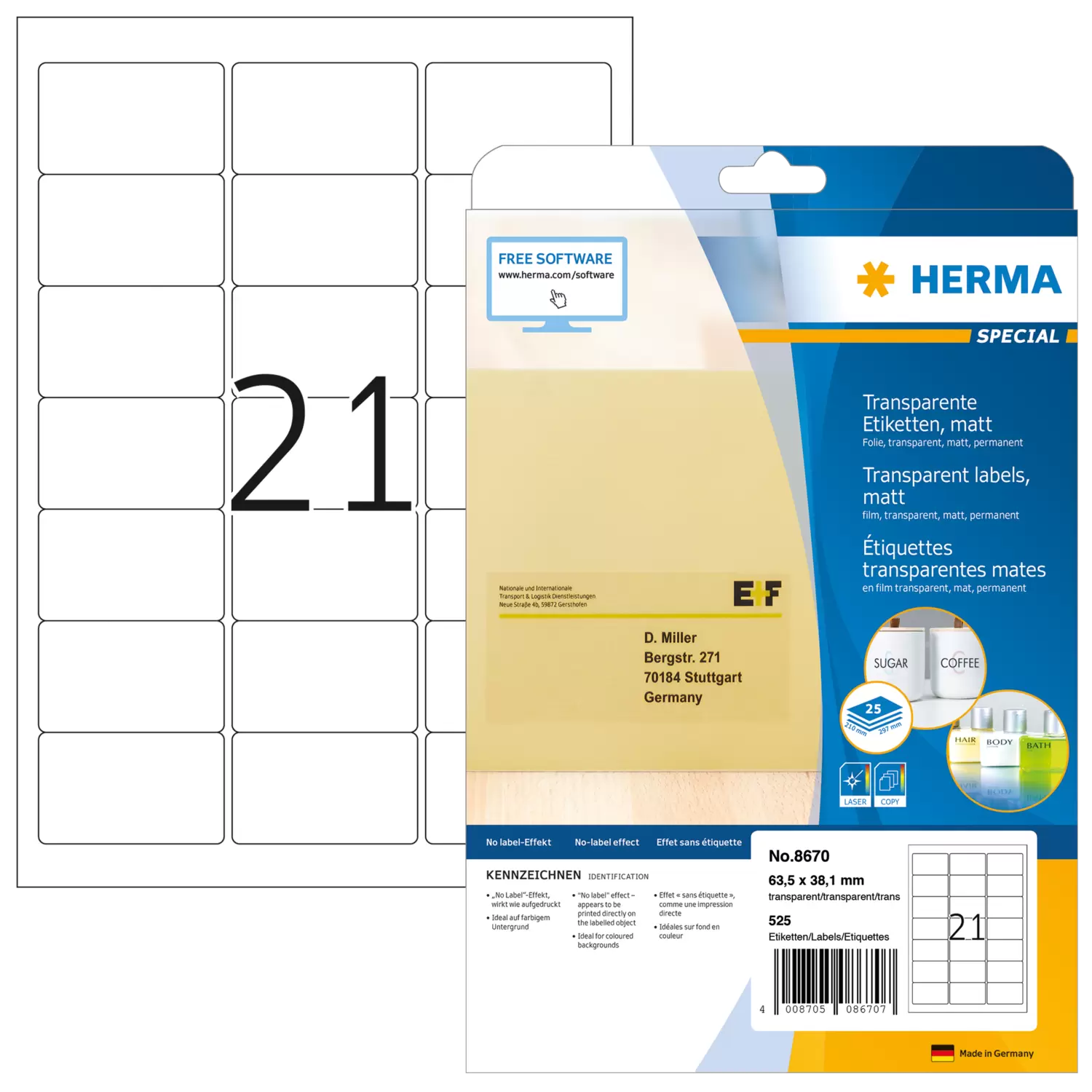 Transparente Adressetiketten, matt, A4, 63,5 x 38,1 mm, wetterfest, permanent haftend