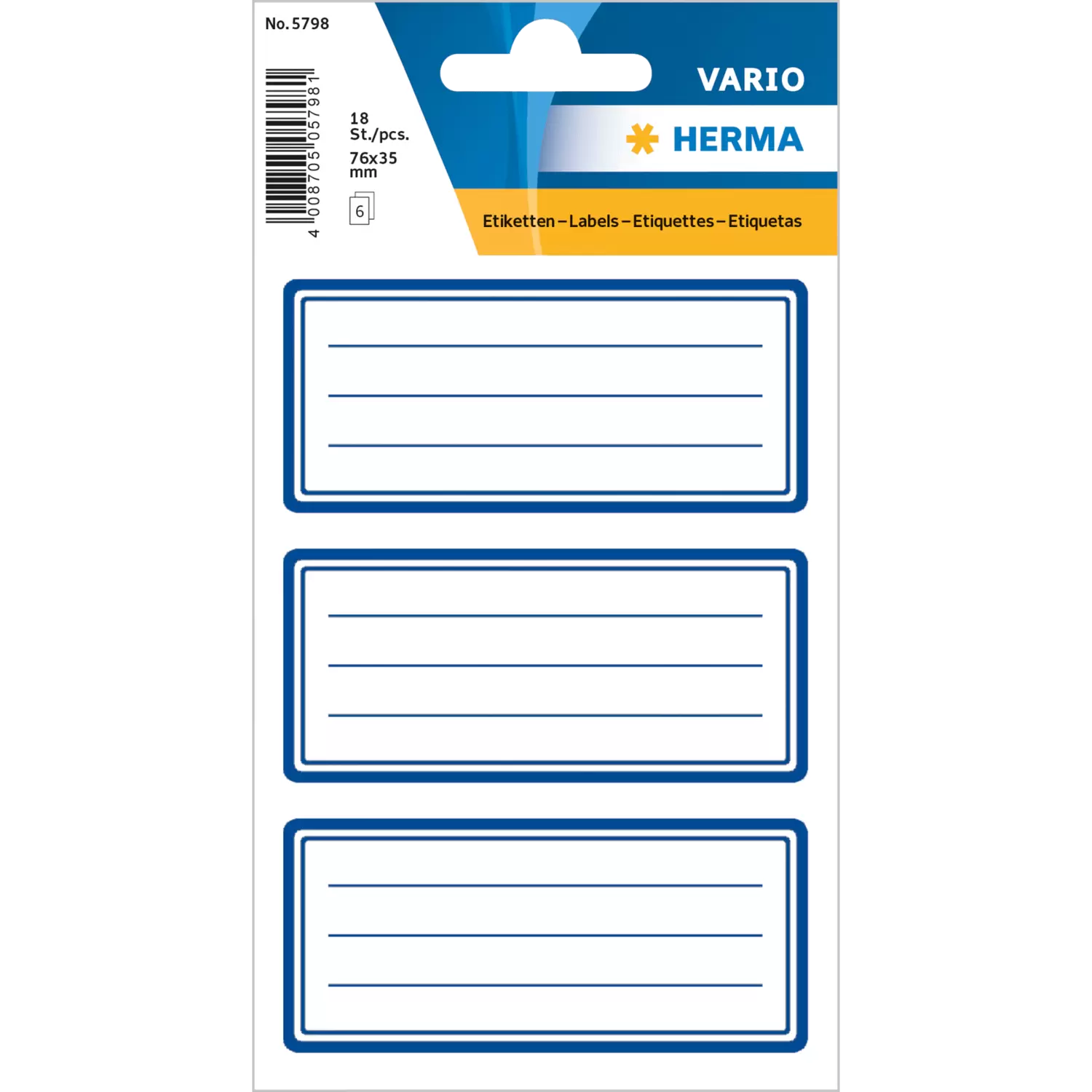 Schuletiketten neutral blauer Rand liniert 76x35 mm