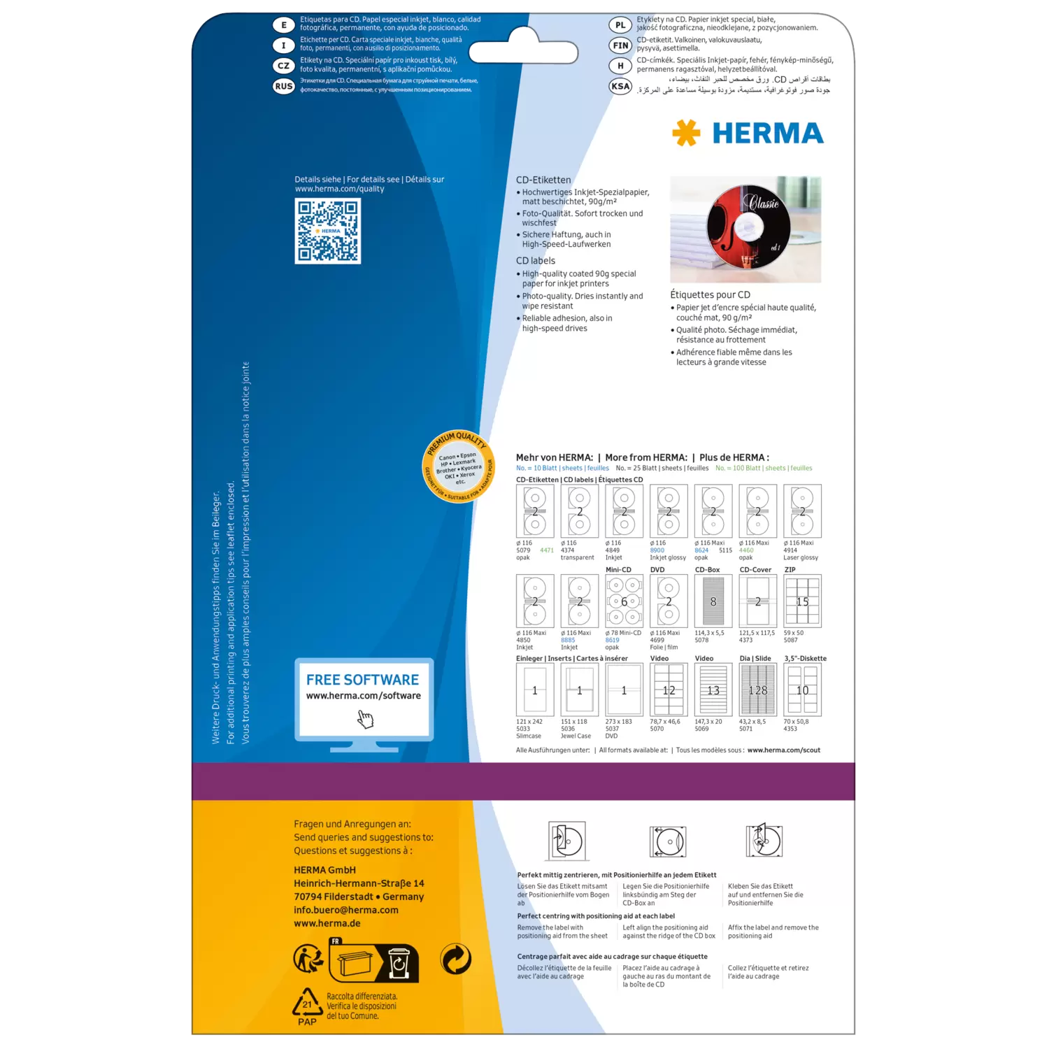 Inkjet-CD-Etiketten A4, Ø 116 mm (Innenloch klein), weiß, permanent haftend