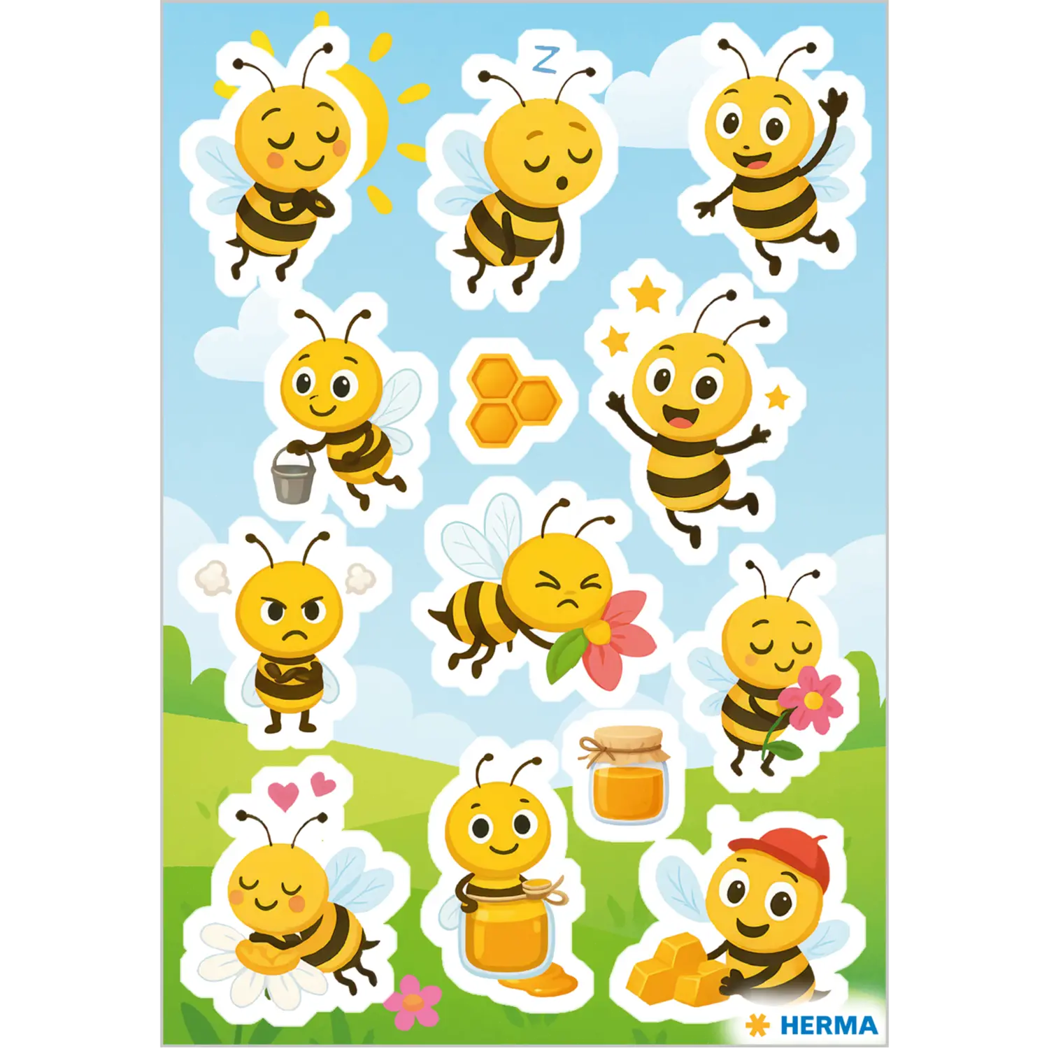 Dieser fröhliche Stickerbogen voller frecher Honigbienen versüßt den Alltag aller, die sich für die kleinen Nektarsammler begeistern. Jede Biene ist liebevoll illustriert und lädt dank der niedlichen Blicke zum Lachen und Träumen ein. Mit diesem Sticker Set wird der Bienen Alltag begleitet: mal sind die kleinen Bienen auf Entdeckungstour, mal friedlich schlummernd inmitten bunter Blumen. Die perfekten Sticker für sonnige Sommertage! Ob auf dem Honigglas, im Freundebuch oder im Hausaufgabenheft die fleißige Bienenschar ist ideal zum Sammeln, Tauschen oder Verzieren, denn egal wo, sie entpuppen sich als besonderer Blickfang. Als kleine Überraschung zaubern sie ganz schnell ein Lächeln ins Gesicht und bringen bunte Bienen Fantasie in jedes Kinderzimmer!
