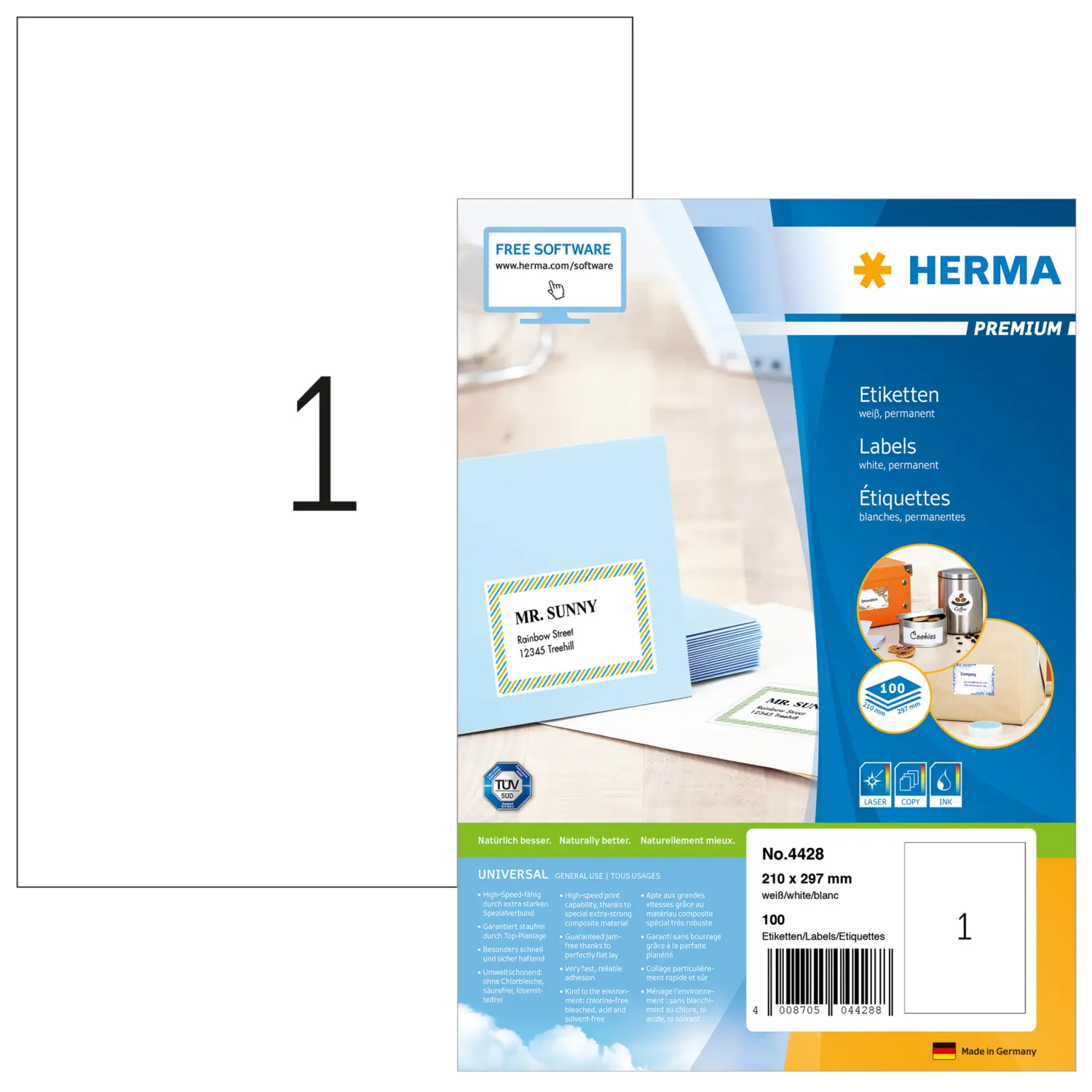 Inhalt: 100 Etiketten / 100 Blatt