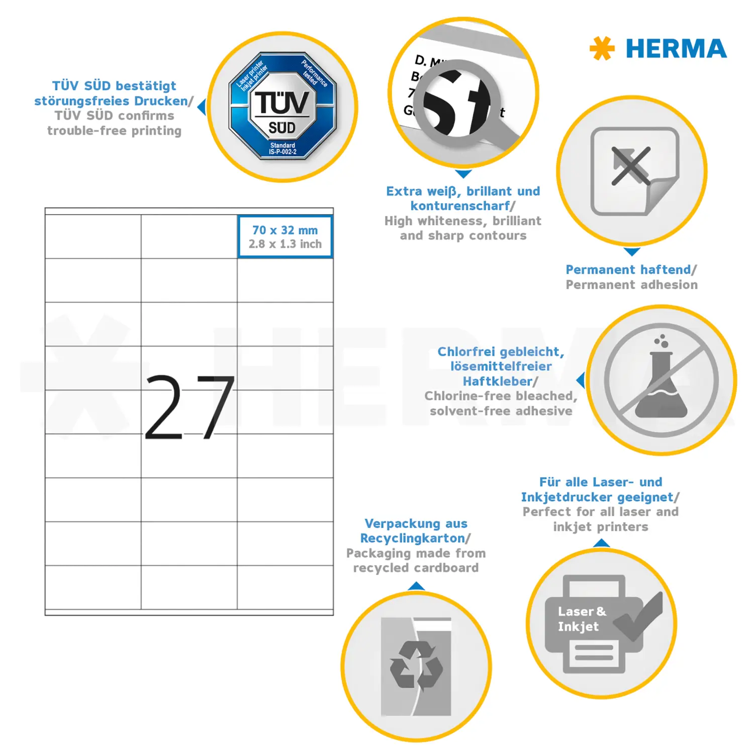 | Inhalt | 2700 Etiketten / 100 Blatt |
