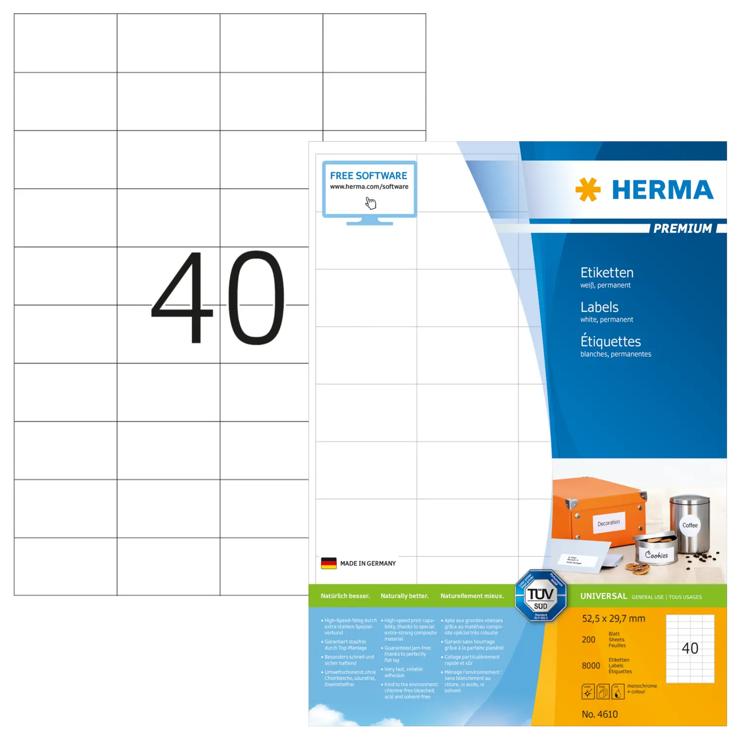 | Inhalt | 8000 Etiketten / 200 Blatt |