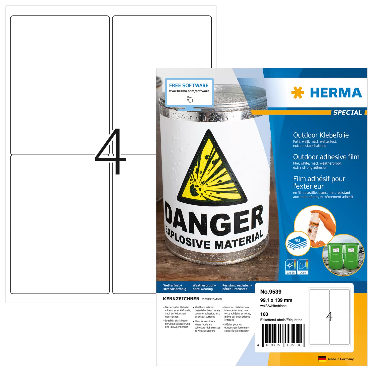 Wetterfeste Outdoor-Folienetiketten A4, 99,1 x 139 mm, weiß, extrem stark haftend, dehnfähig