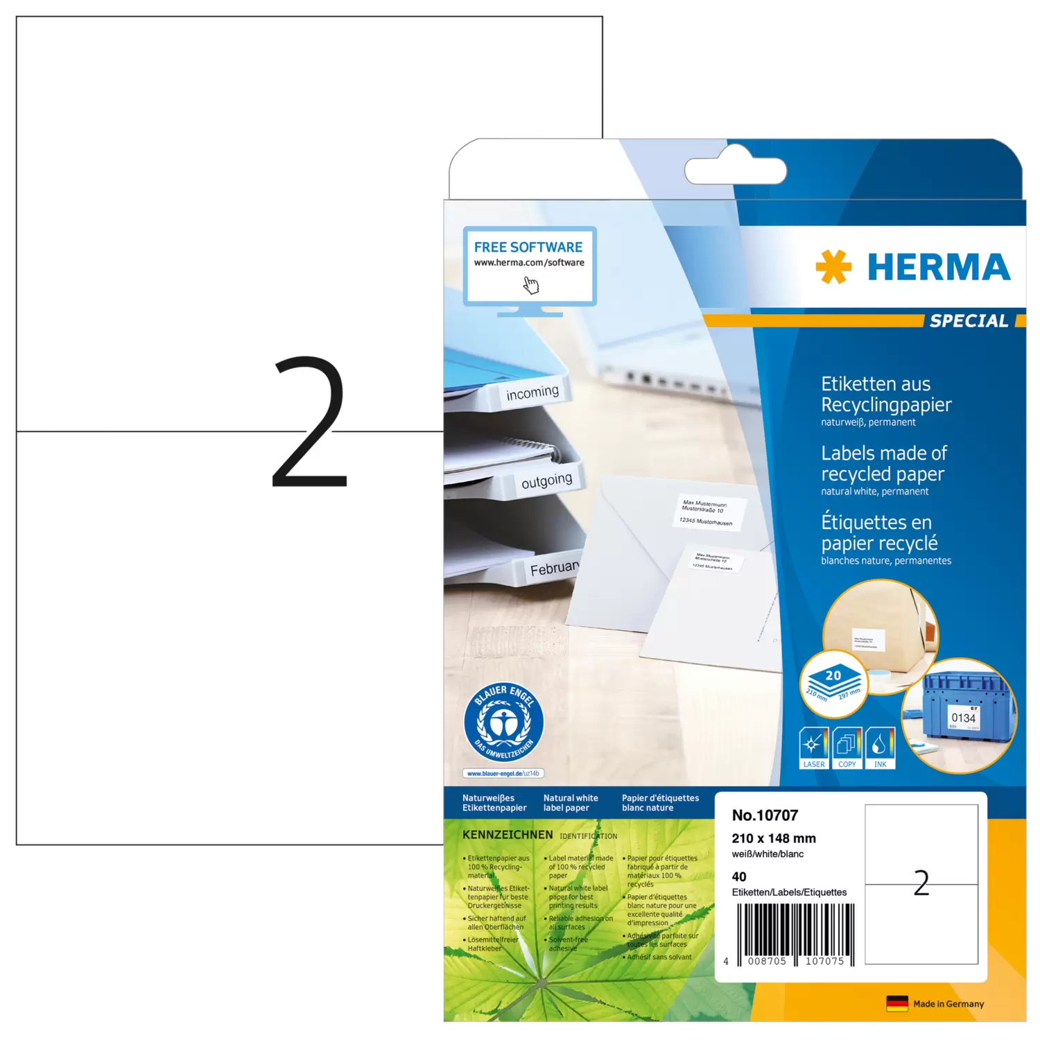 Etiketten aus Recyclingpapier A4, 210 x 148 mm, weiß, permanent haftend