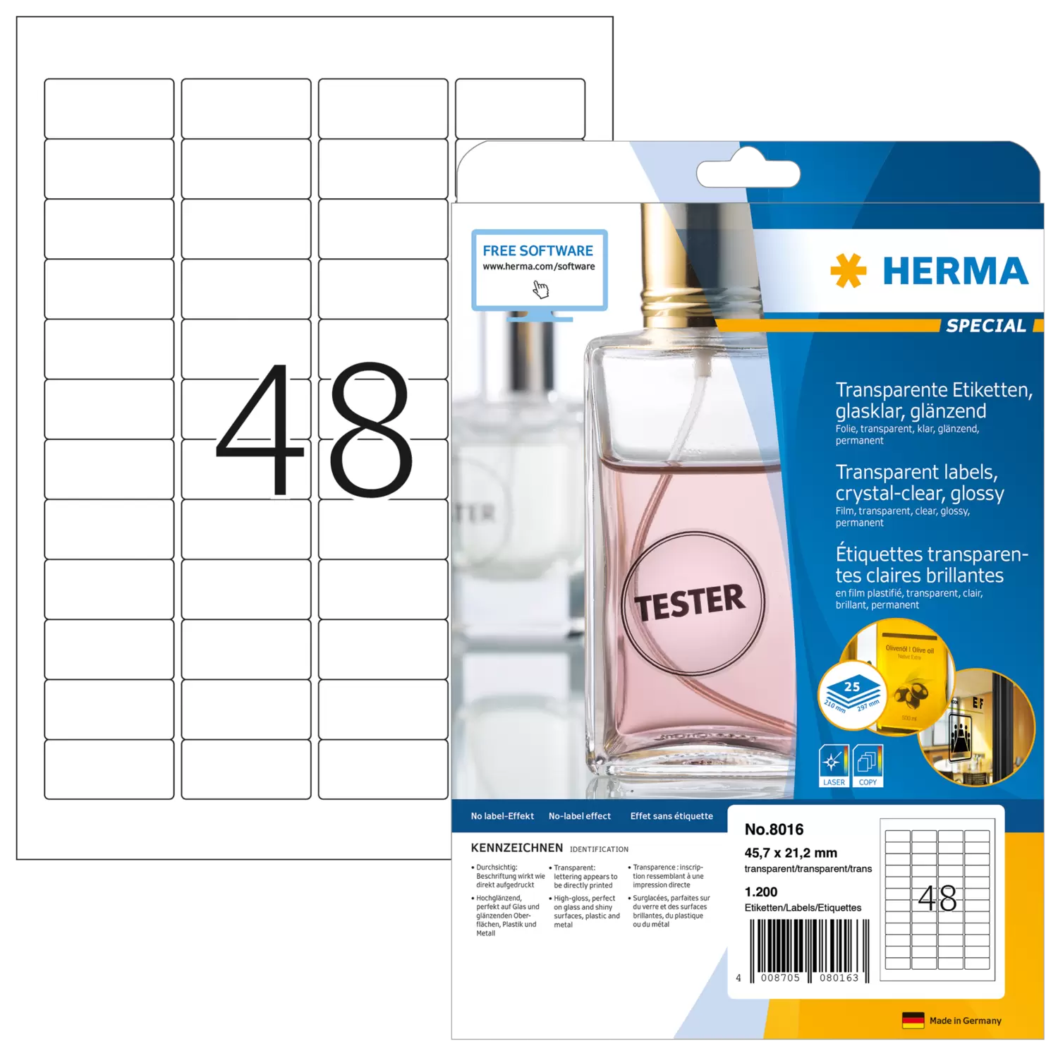Folienetiketten, transparent, glasklar, A4, 45,7 x 21,2 mm, wetterfest, permanent