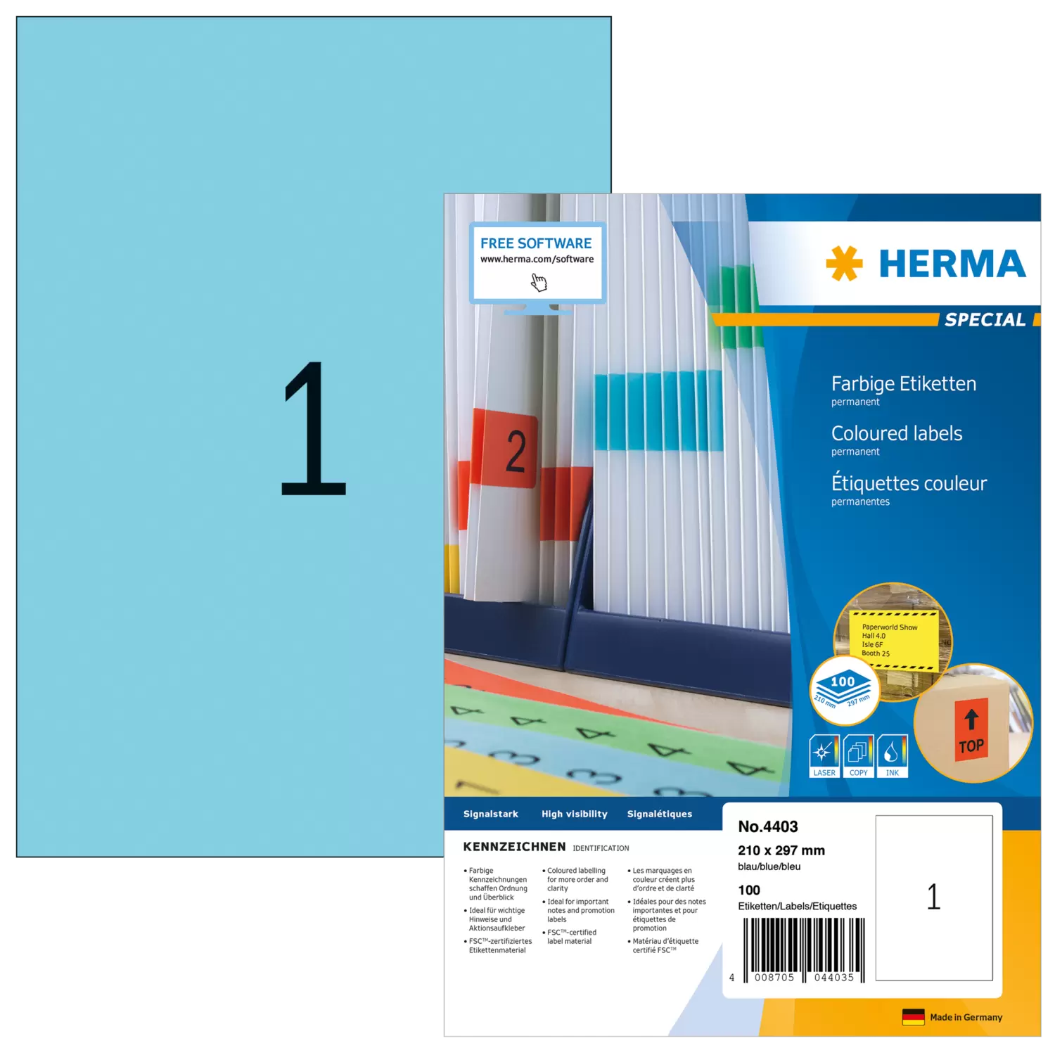 Farbige Etiketten A4, 210 x 297 mm, blau, permanent haftend
