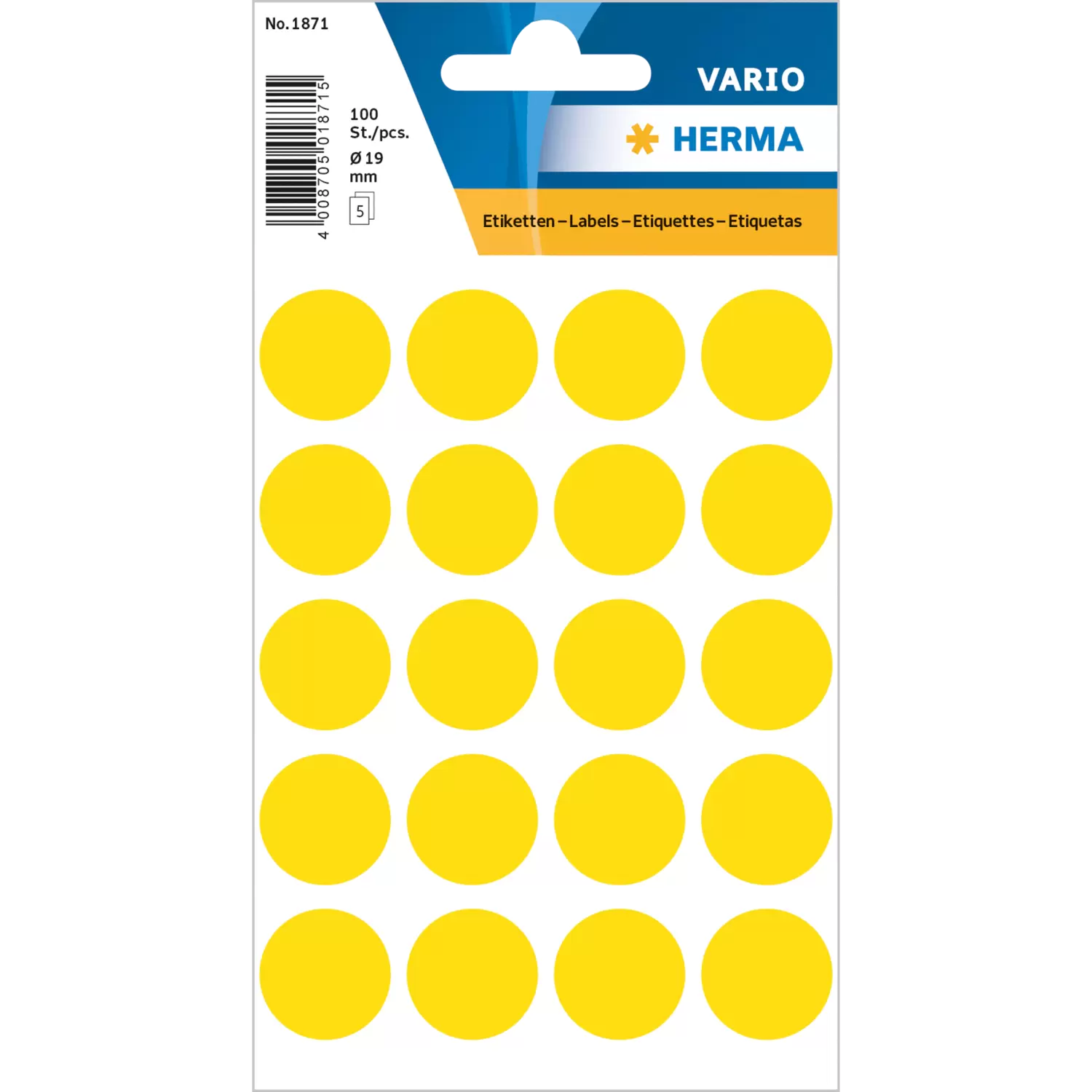 Vielzwecketiketten/Farbpunkte Ø 19 mm, rund, gelb, permanent haftend, zur Handbeschriftung