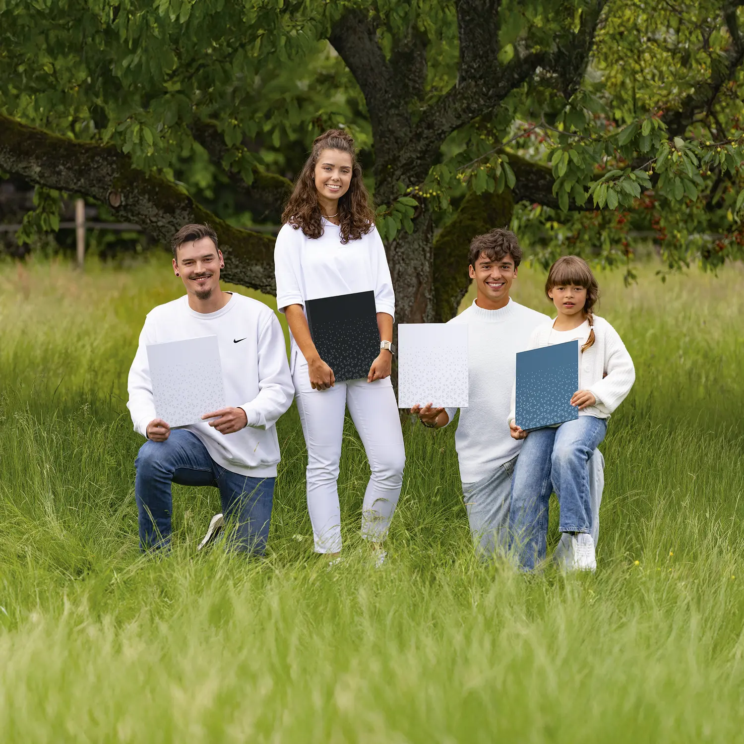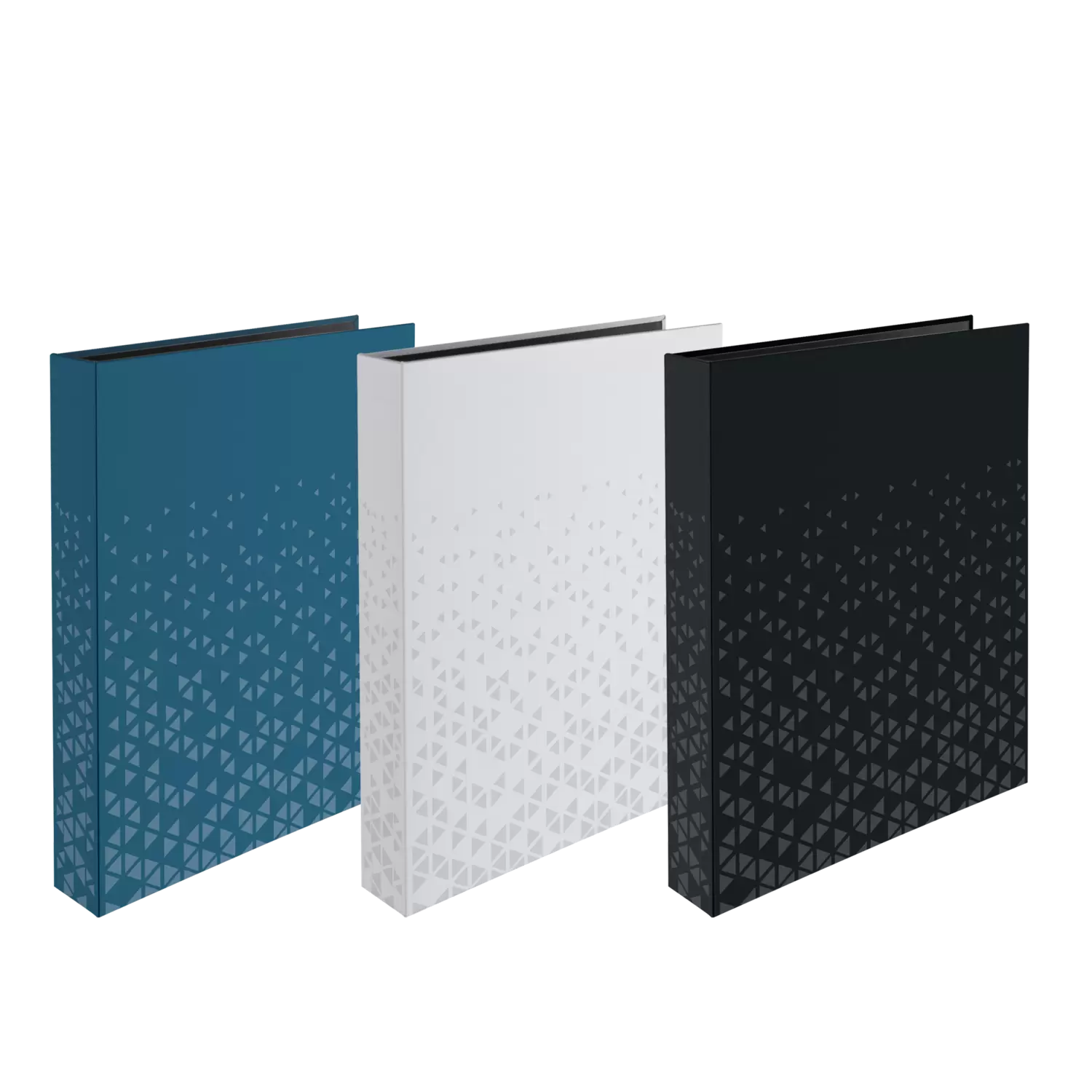 - Folienveredeltes Fotobook mit Dreiecks-Muster und Softtouch-Oberfläche.