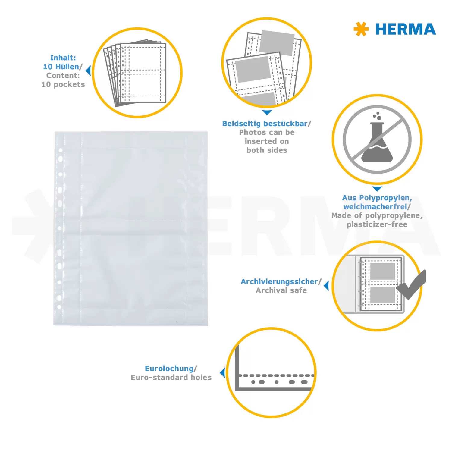 - Aus Polypropylen (PP), absolut weichmacherfrei und archivierungssicher