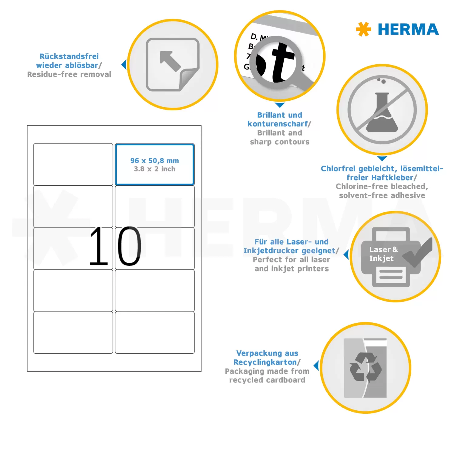Ablösbare Adressetiketten A4, 96 x 50,8 mm, weiß