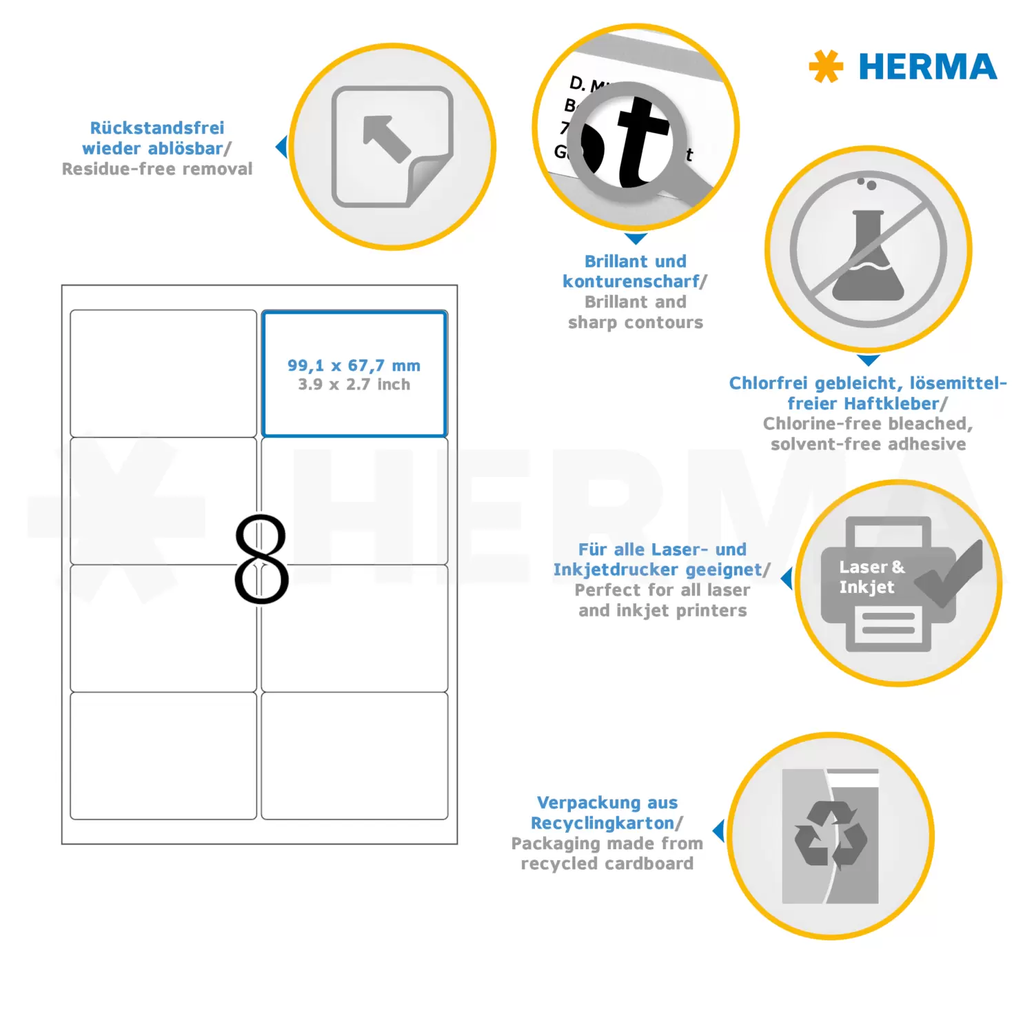 Ablösbare Adressetiketten A4, 99,1 x 67,7 mm, weiß, blickdicht