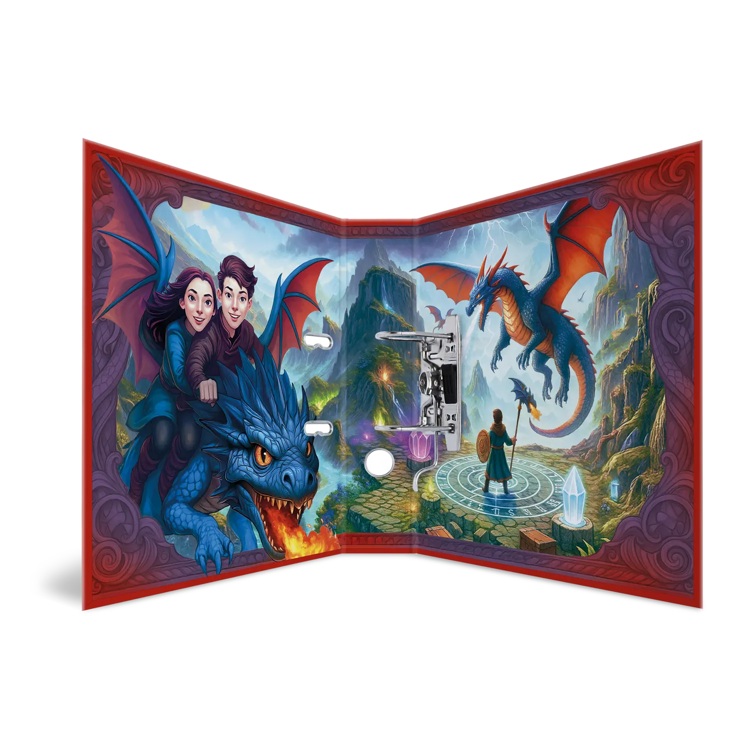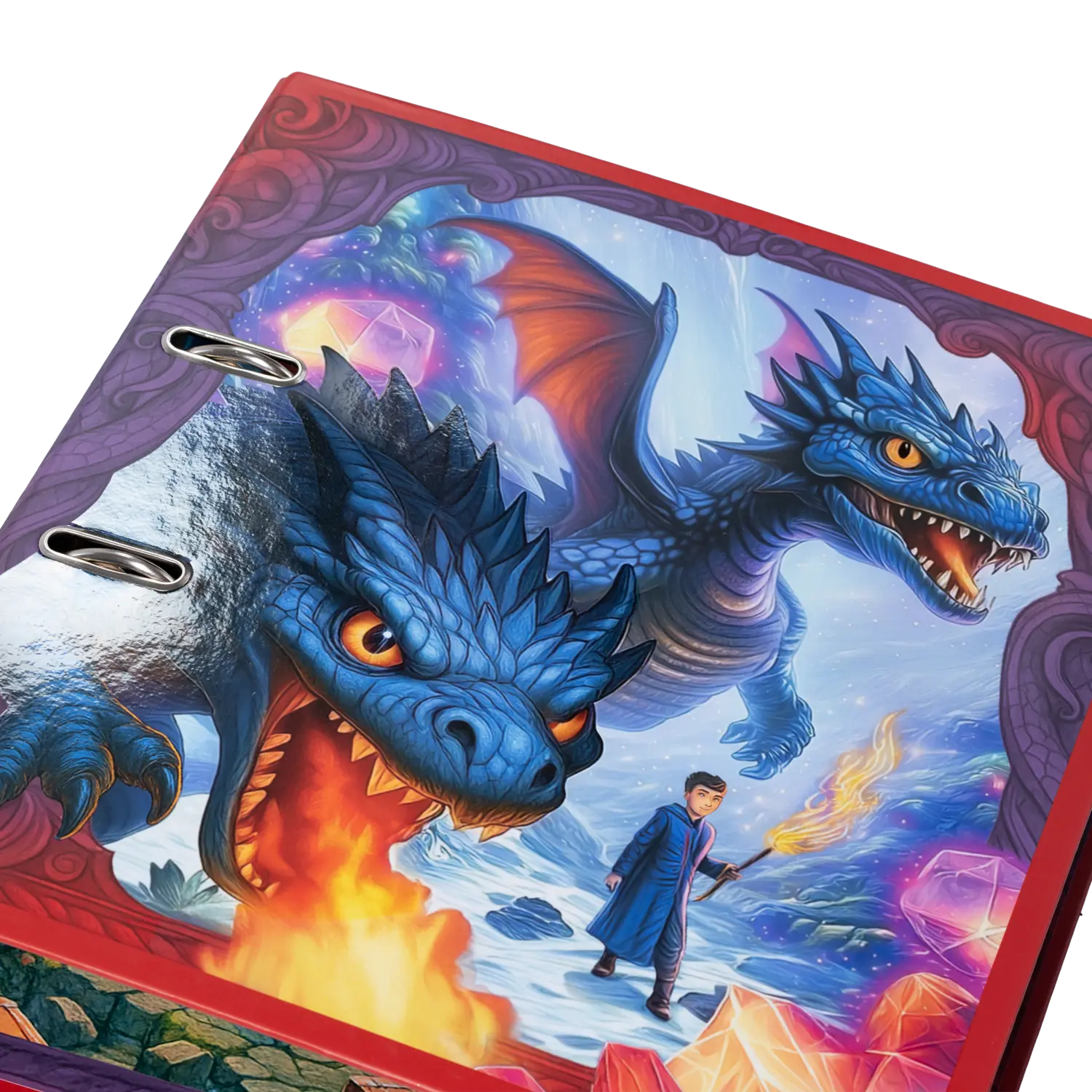 - Vollflächiges, folienveredeltes Design mit magischen Drachen
