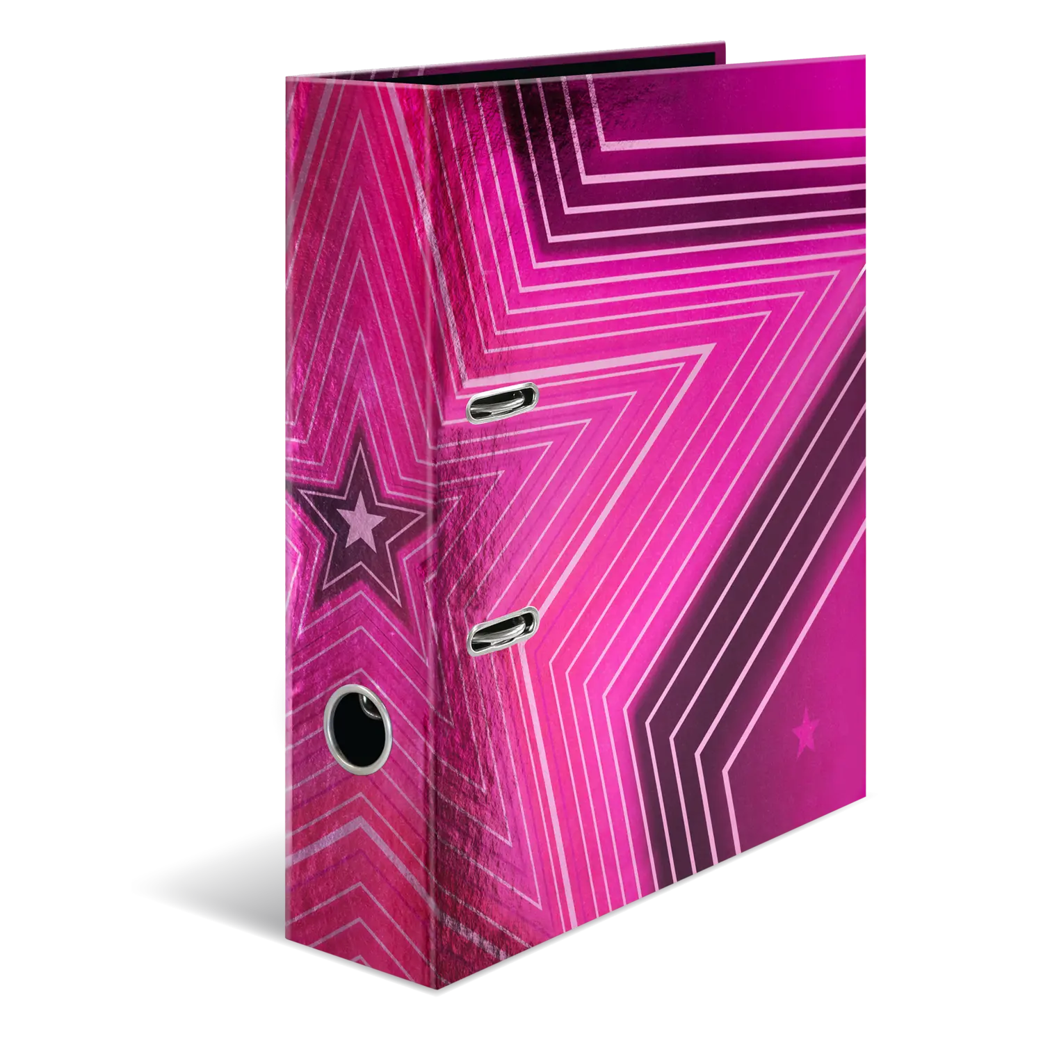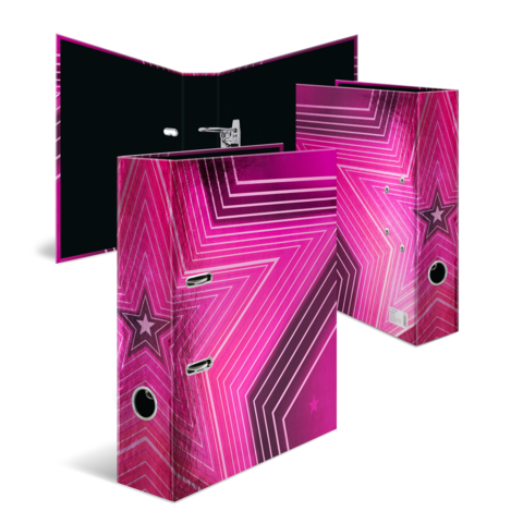 Der Motiv Ordner Venus ist etwas ganz Besonderes, denn er vereint Design und Funktonalität auf höchstem Niveau. Das himmlisch, strahlend pinkfarbene Design, verziert mit leuchtenden Sternen ist ein absolutes Highlight und definitiv ein Hingucker! Der Ordner ist aus hochwertigem Karton hergestellt, mit einem besonderen Druckverfahren auf Spiegelfolie veredelt und durch das praktische Griffloch ganz einfach hervorzuholen und wieder zurückzustellen. Die spezielle Hebelmechanik mit Niederhalter aus Metall sorgt dafür, den Ordnerinhalt ordentlich und stabil beisammen zu halten. Der breite Rücken garantiert Stabilität im Regal und ausreichend Platz für viele Unterlagen im Format bis DIN A4.