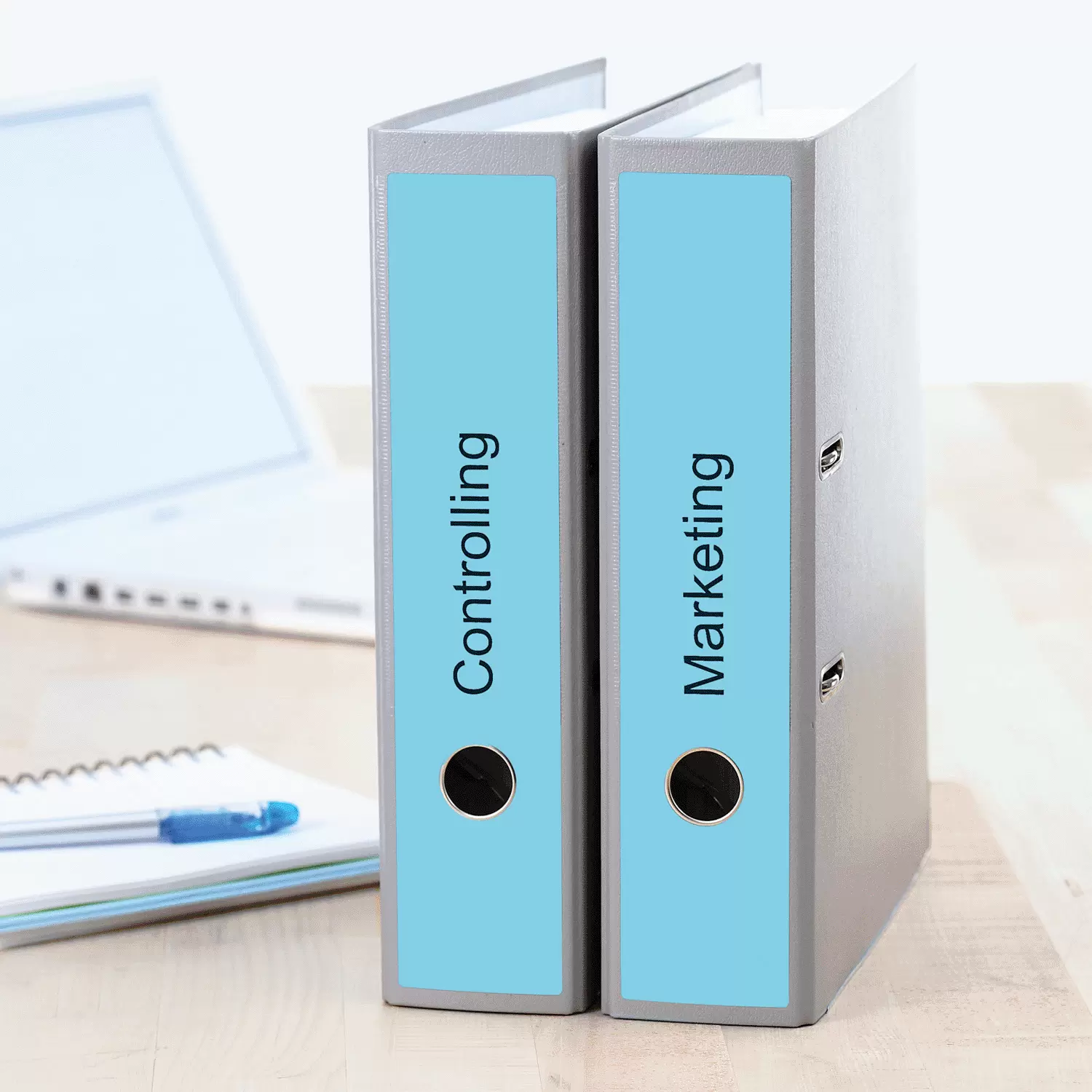 • Ordnerrücken-Schilder haften sicher, auch bei häufigem Ordnergebrauch