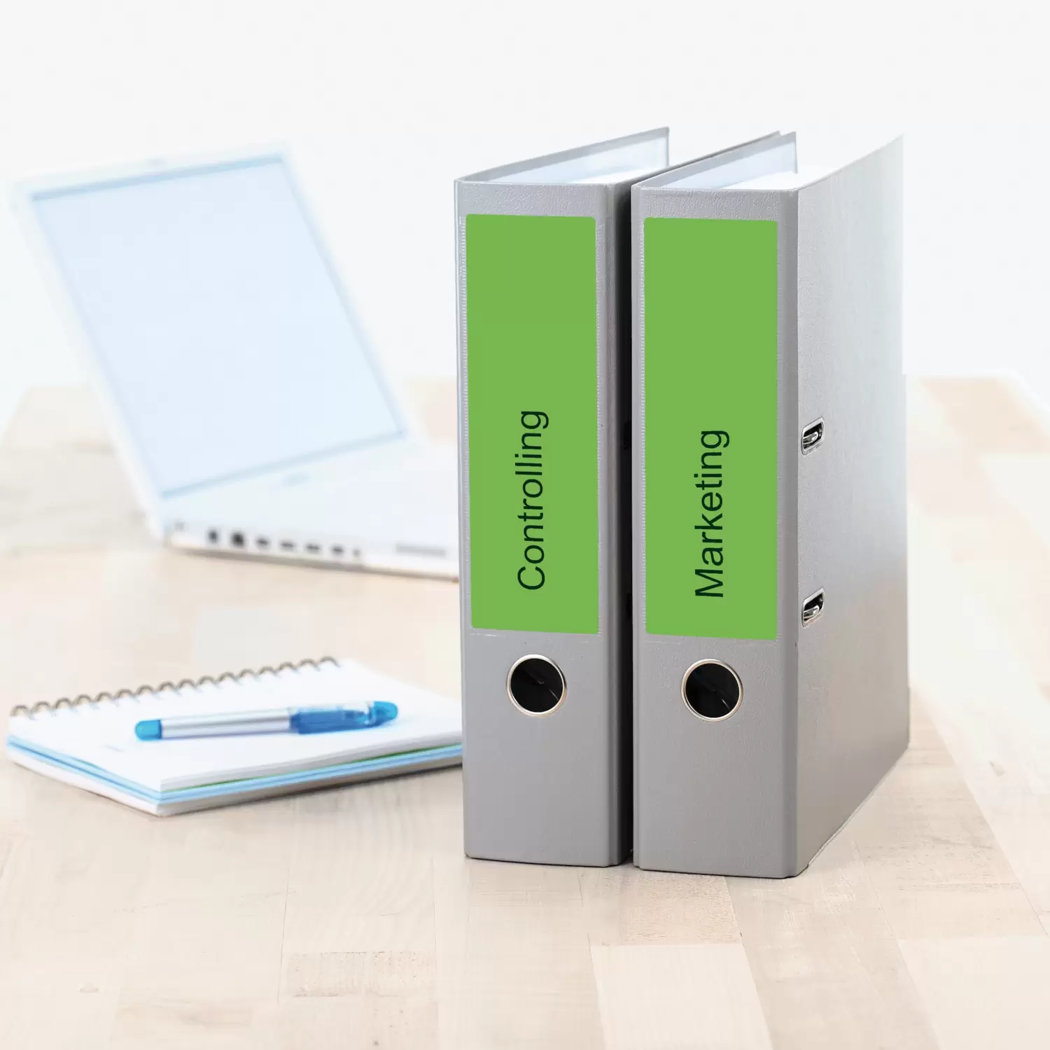 • Ordnerrücken-Schilder haften sicher, auch bei häufigem Ordnergebrauch