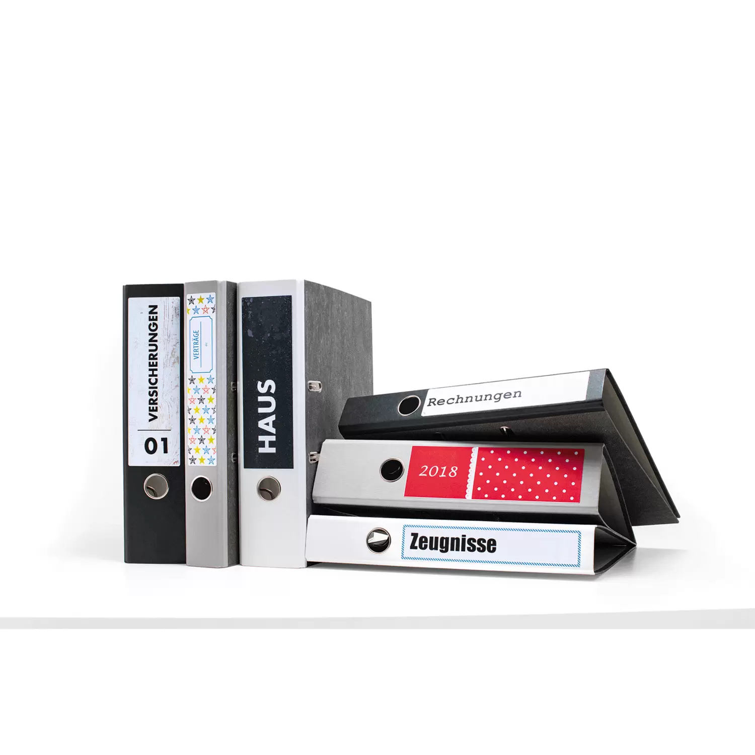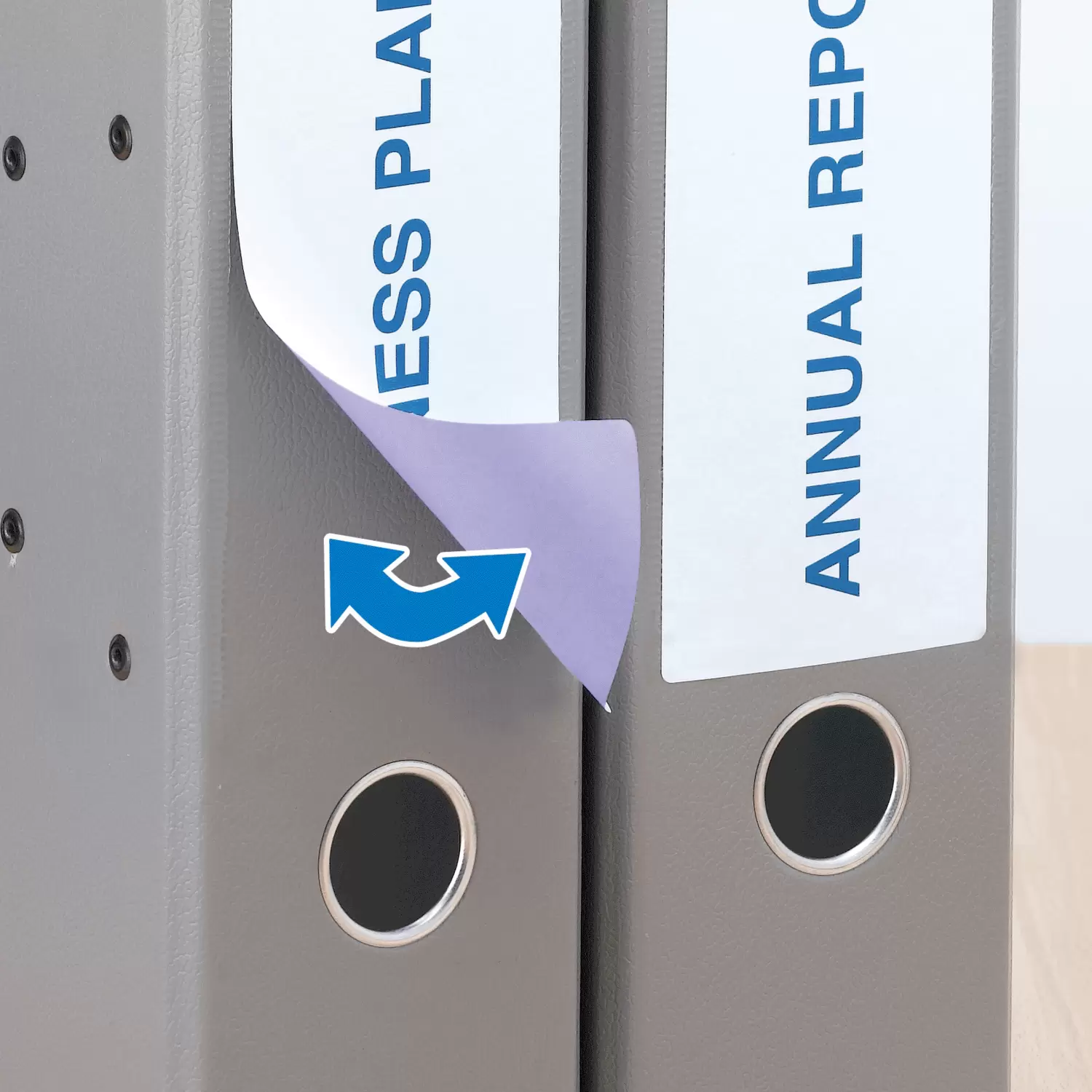 • Ordnerrücken-Schilder haften sicher, lassen sich dennoch jederzeit rückstandsfrei ablösen