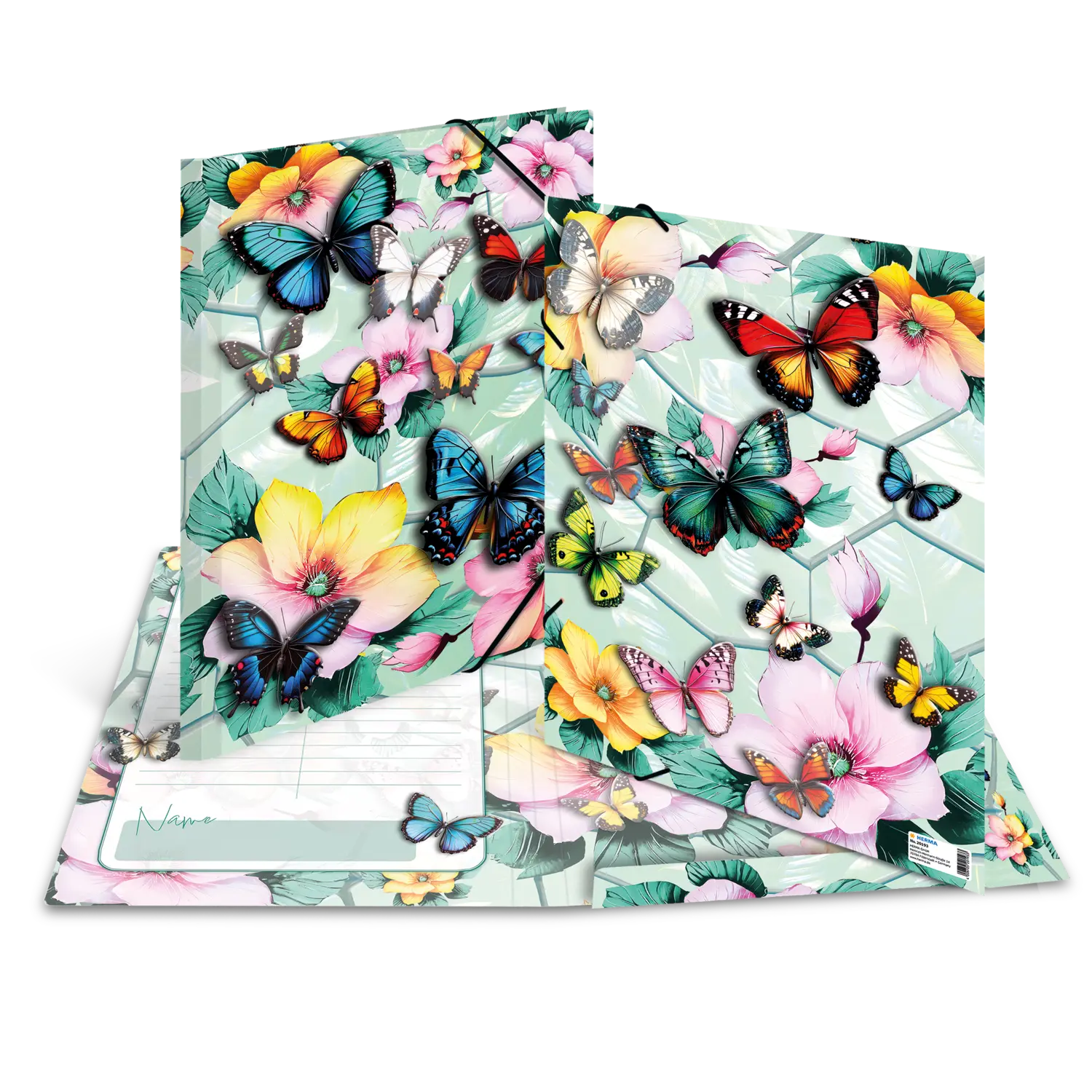 - Hochwertige Sammelmappe mit zartem Schmetterlings- und Blütendesign