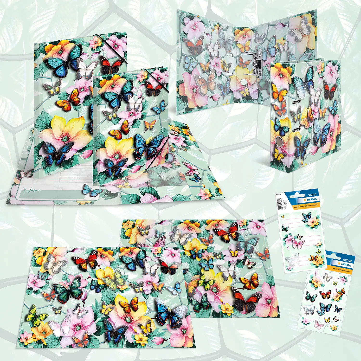 Willkommen im Traumgarten: Zarte Blüten kombiniert mit eleganten Schmetterlingen in wunderschönen Pastellfarben. Diese Sammelmappe ist mit viel Liebe und Feingefühl für's Detail ein absoluter Hingucker. Die filigranen Schmetterlinge erwachen dank der leuchtenden Farben beinahe zum Leben. Von leuchtendem Blau über sonniges Gelb bis hin zu zartem Rosa. hier schlägt das Herz jedes Naturliebhabers höher. Praktisch und robust. das ist Qualität von HERMA. Die Mappe misst 44 cm x 33,5 cm und ist damit groß genug für Papiere, Zeichnungen und Dokumente bis zu einer Größe von DIN A3. Sie ist aus stabilem Karton gefertigt und lässt sich durch zwei hochwertige Eckspanner einfach öffnen und verschließen. Das praktische Inhaltsverzeichnis zum Selbstbschriften sorgt für Ordnung und Struktur innerhalb der Mappe. Durch die drei Innenklappen wird der Inhalt geschützt und auch kleinere Schriftstücke können nicht herausfallen