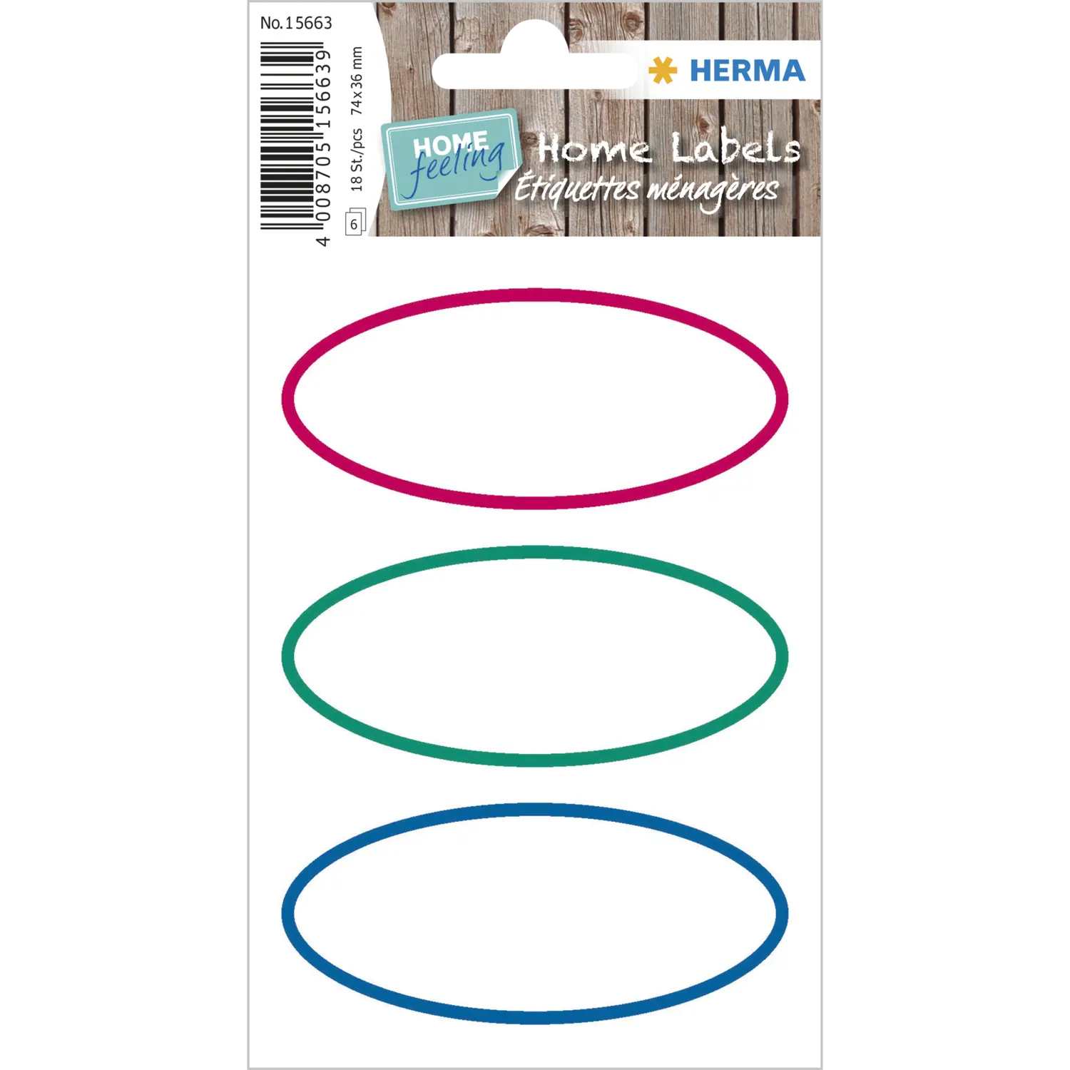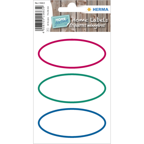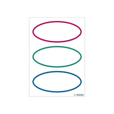 - Ovale Haushalts-Etiketten in weiß mit farbiger Umrandung in der Größe 76 x 35 mm, 18 Stück pro Packung