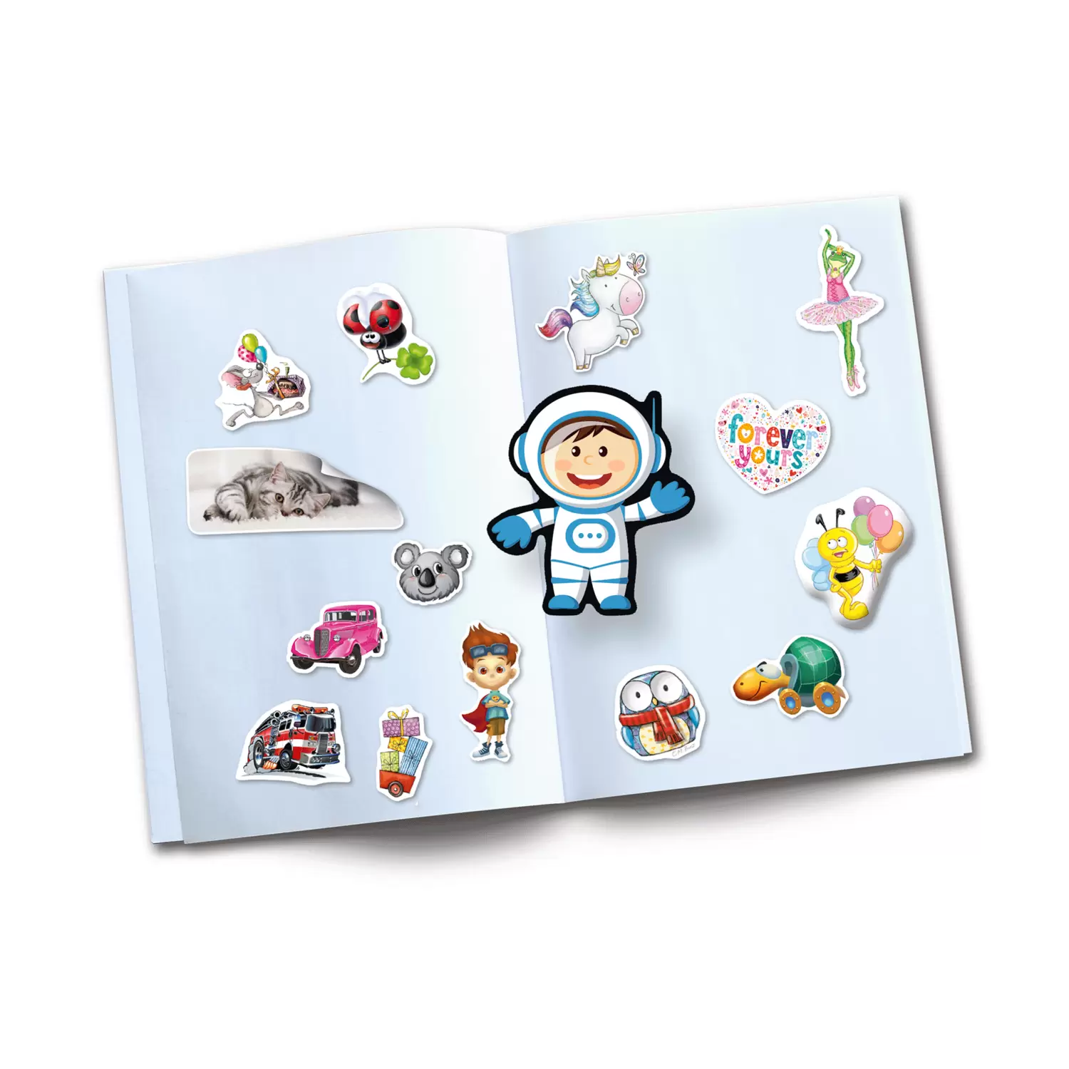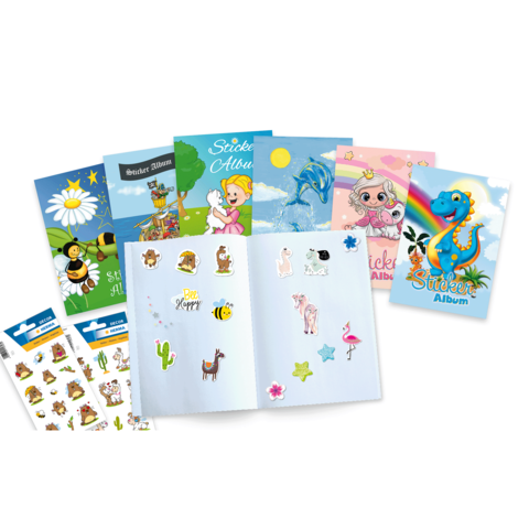 - 16 silikonisierte Blankoseiten zum Einkleben und Wiederablösen von Stickern und Aufklebern
