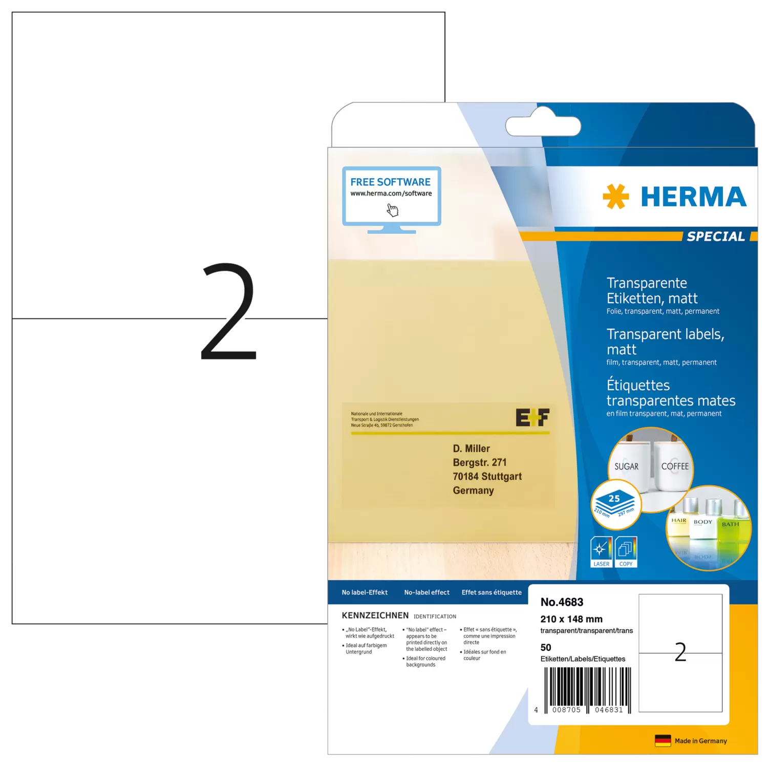 Transparente Folien-Etiketten, matt, A4, 210 x 148 mm, wetterfest, permanent haftend