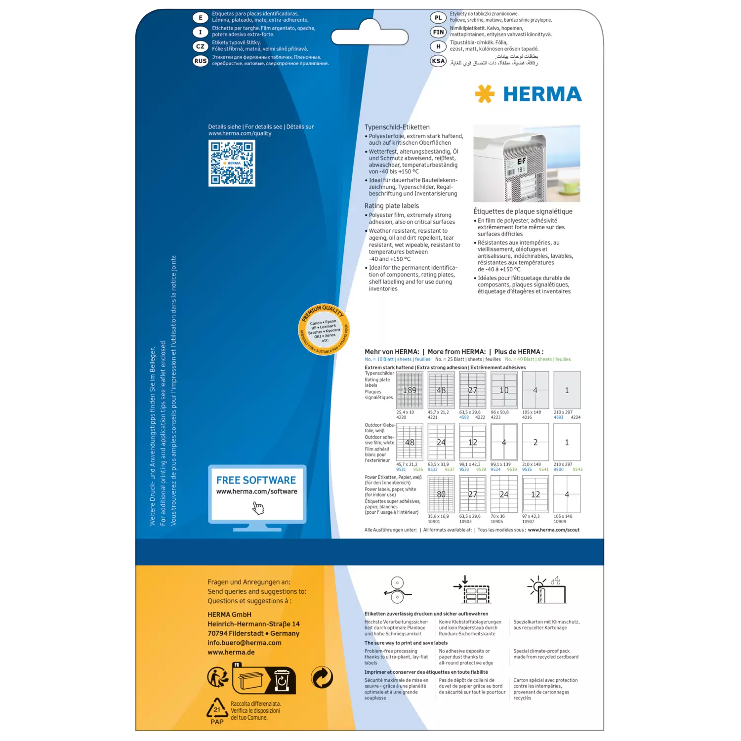Typenschild-Etiketten, silber, A4, 96 x 50,8 mm, extrem stark haftend, wetterfest, reißfest