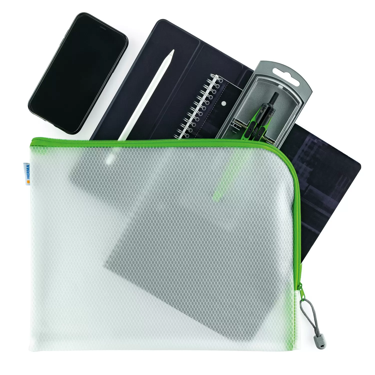 - HERMA Universaltasche A4+, mit praktischem Reißverschluss, grün eingefassten Nähten, 36 x 28 cm, langlebiges Material