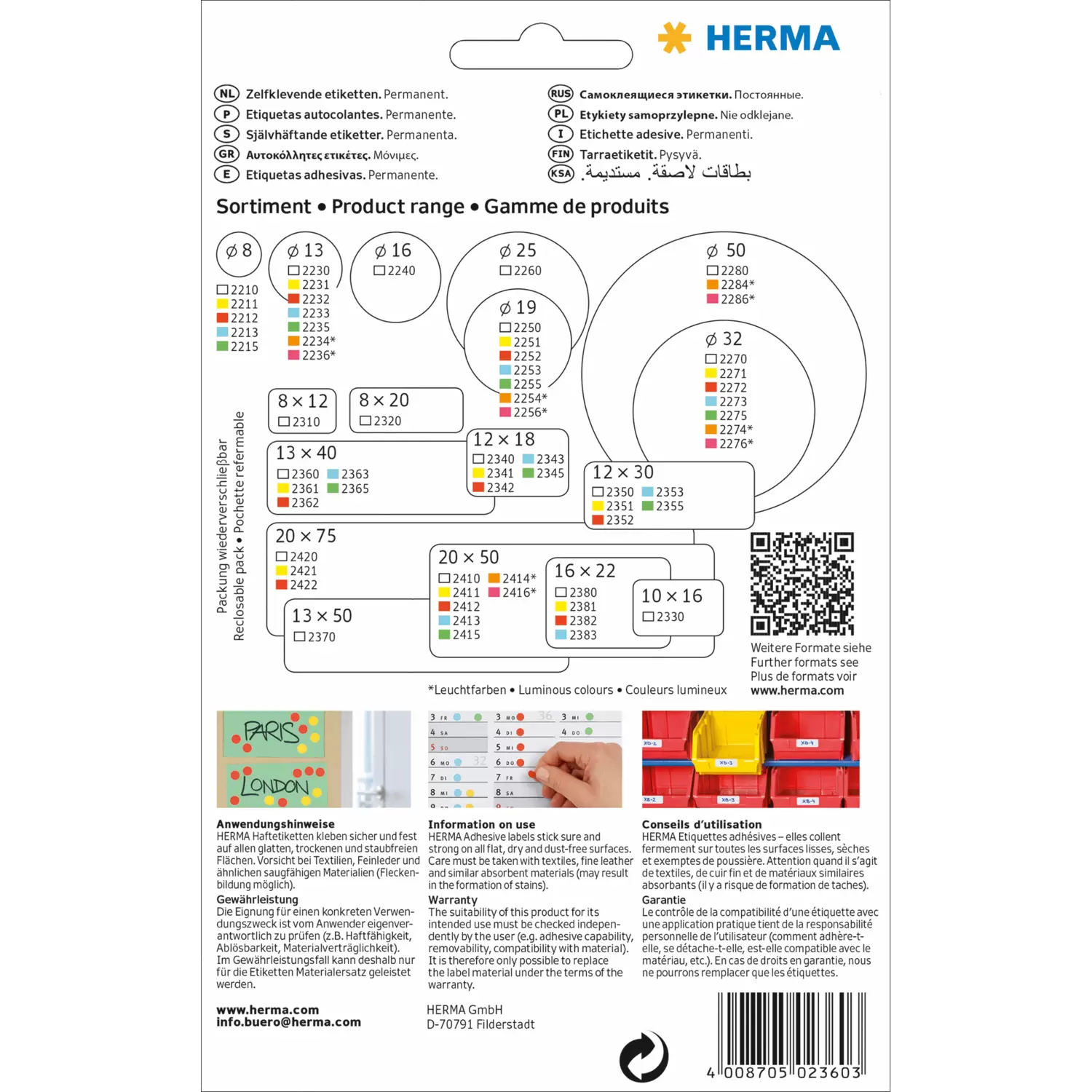 - Vielzweck-Klebeetiketten können mit allen üblichen Schreibgeräten beschriftet werden, nicht geeignet für das Bedrucken mit PC