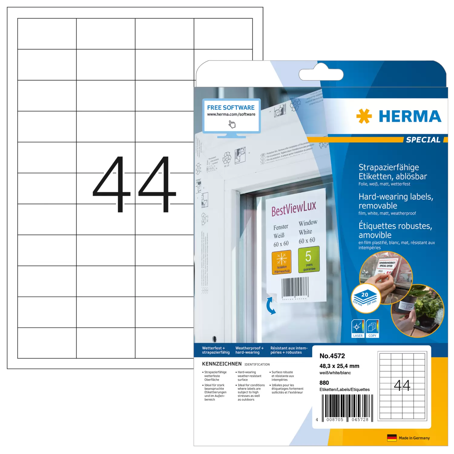 Wetterfeste Folien-Etiketten A4, 48,3 x 25,4 mm, weiß, wiederablösbar