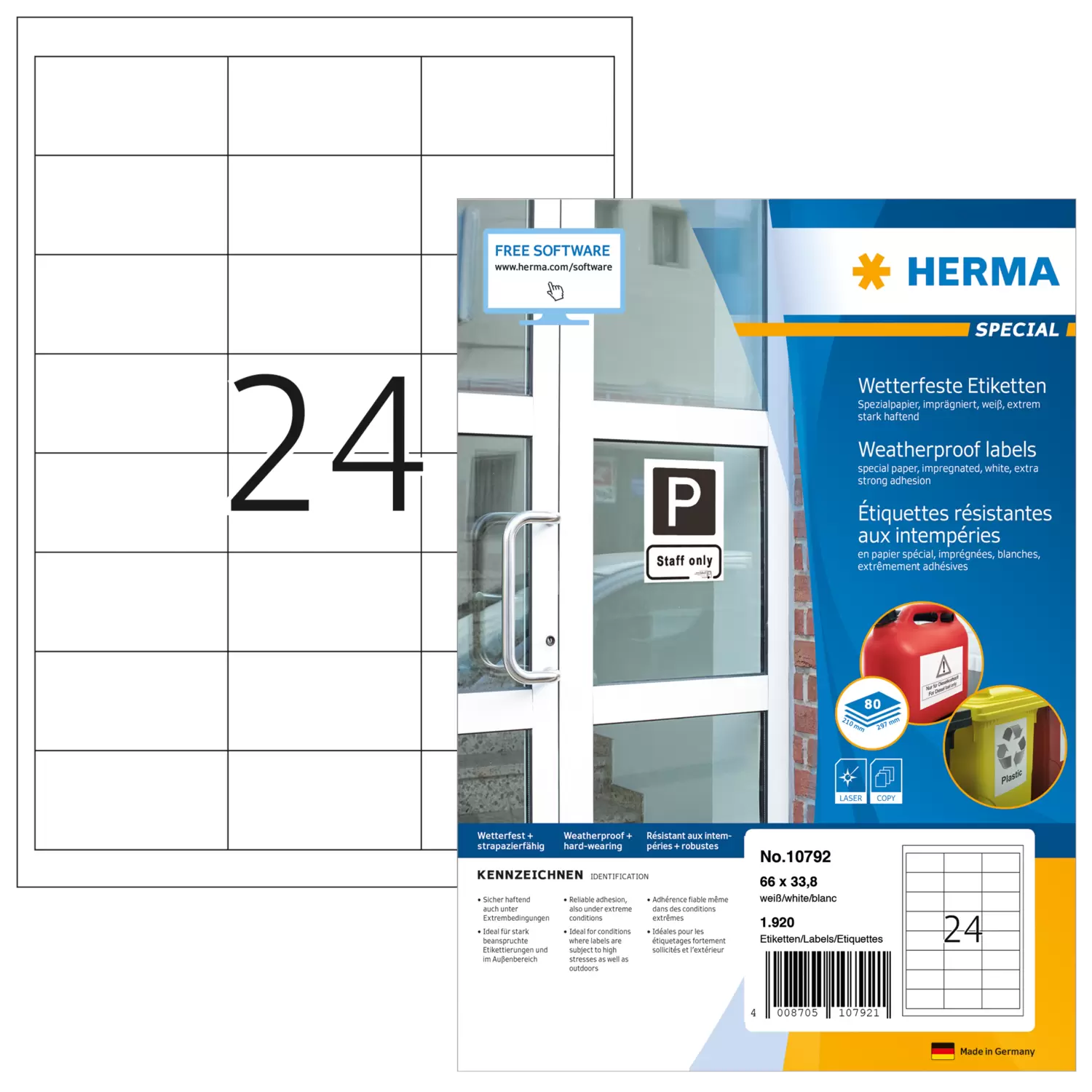 Witterungsbeständige Etiketten A4, 66 x 33,8 mm, weiß, extrem stark haftend, imprägniert